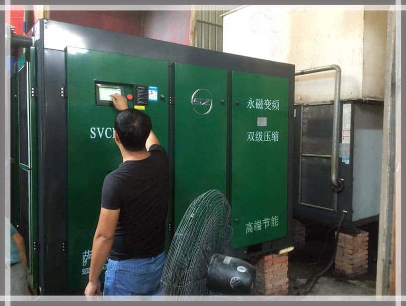 在薩震節能空壓機打消了之前所有的疑慮之后,該客戶終于可以放下心來,全心的投入到生產中去,再也不用擔心噪音大、耗能高、運行不穩定等問題了。他摸著這個比自己高出幾個頭來的家伙,滿眼的都是期許和欣慰!就這樣,薩震節能空壓機SVCF-90A雙級壓縮空壓機,開啟了一段為新主人節能省錢之旅……