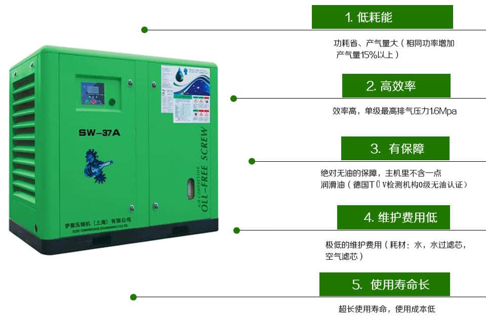 薩震水潤滑無油螺桿空壓機